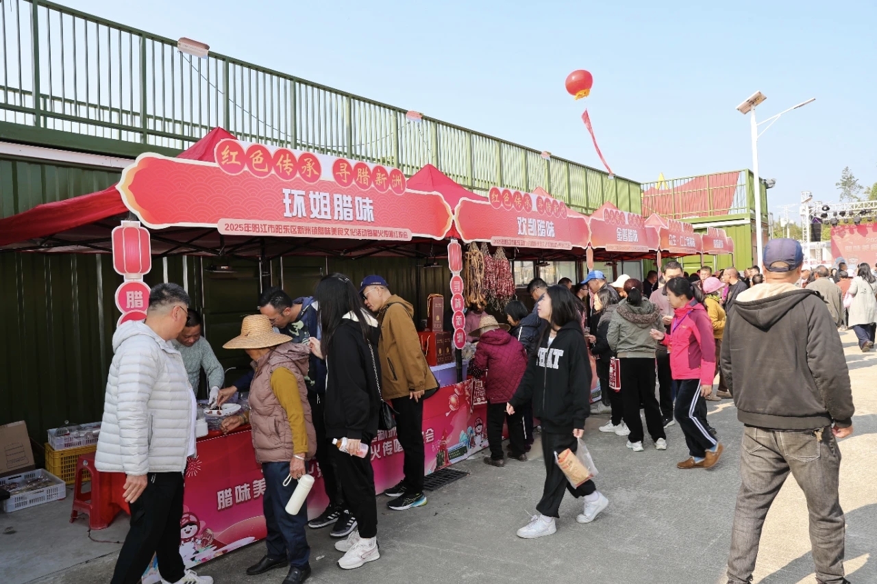 “红色传承 寻腊新洲”——2025年阳江市阳东区新洲镇腊味美食展销现场。