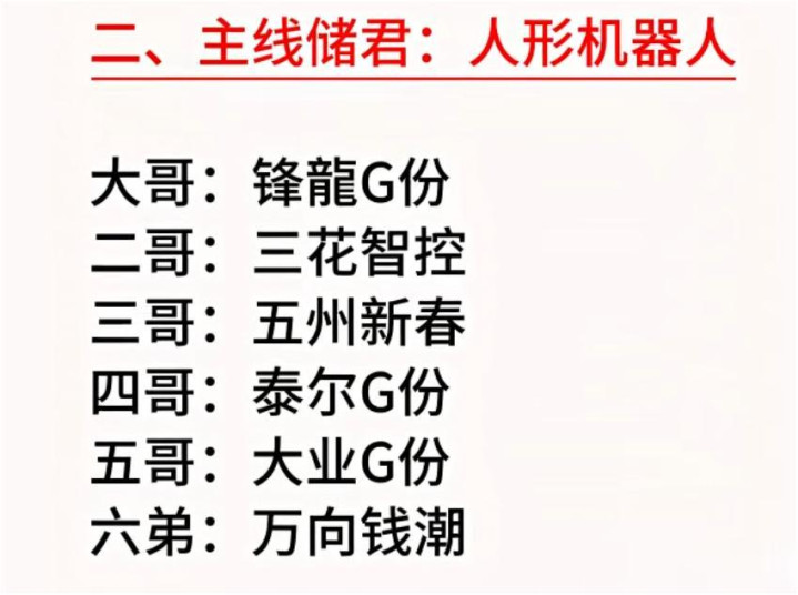 - 锋龙股份作为“大哥”,在人形机器人的核心零部件等方面有技术布局。